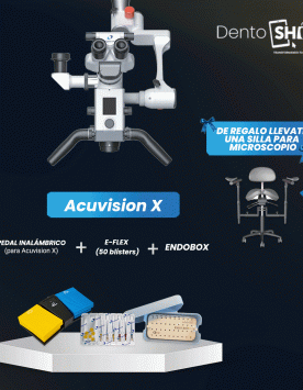 ¡Lleva tu práctica al siguiente nivel!Adquiere el Microscopio Acuvision X + Pedal Inalámbrico + E-Flex (50 blíster) + Endo Box Y